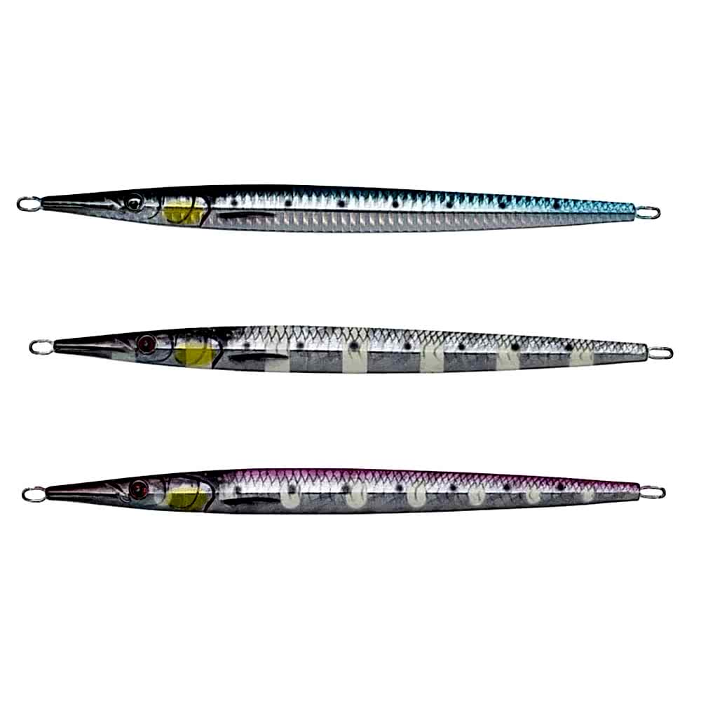 Genel Bakış: Savage Gear 3D Needle Jig, zargana balığının mükemmel metal bir taklididir. Uzun, ince gövdesi sayesinde inanılmaz uzaklıklara atış yapabilir ve su içinde çok az direnç gösterir. Geometrik profili sayesinde, sahte suya düşerken seğirtir, parlayıp söner ve düzensiz bir aksiyon sergiler. Gövdesinde, jigging sırasında saldırgan balıkları uzaktan kendine çeken bir tıklama sesi gönderen çelik çıngırak bulunur.